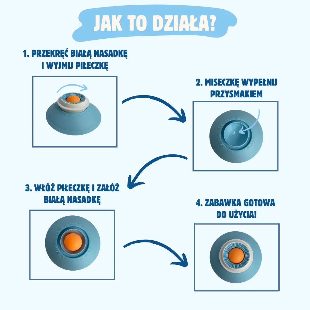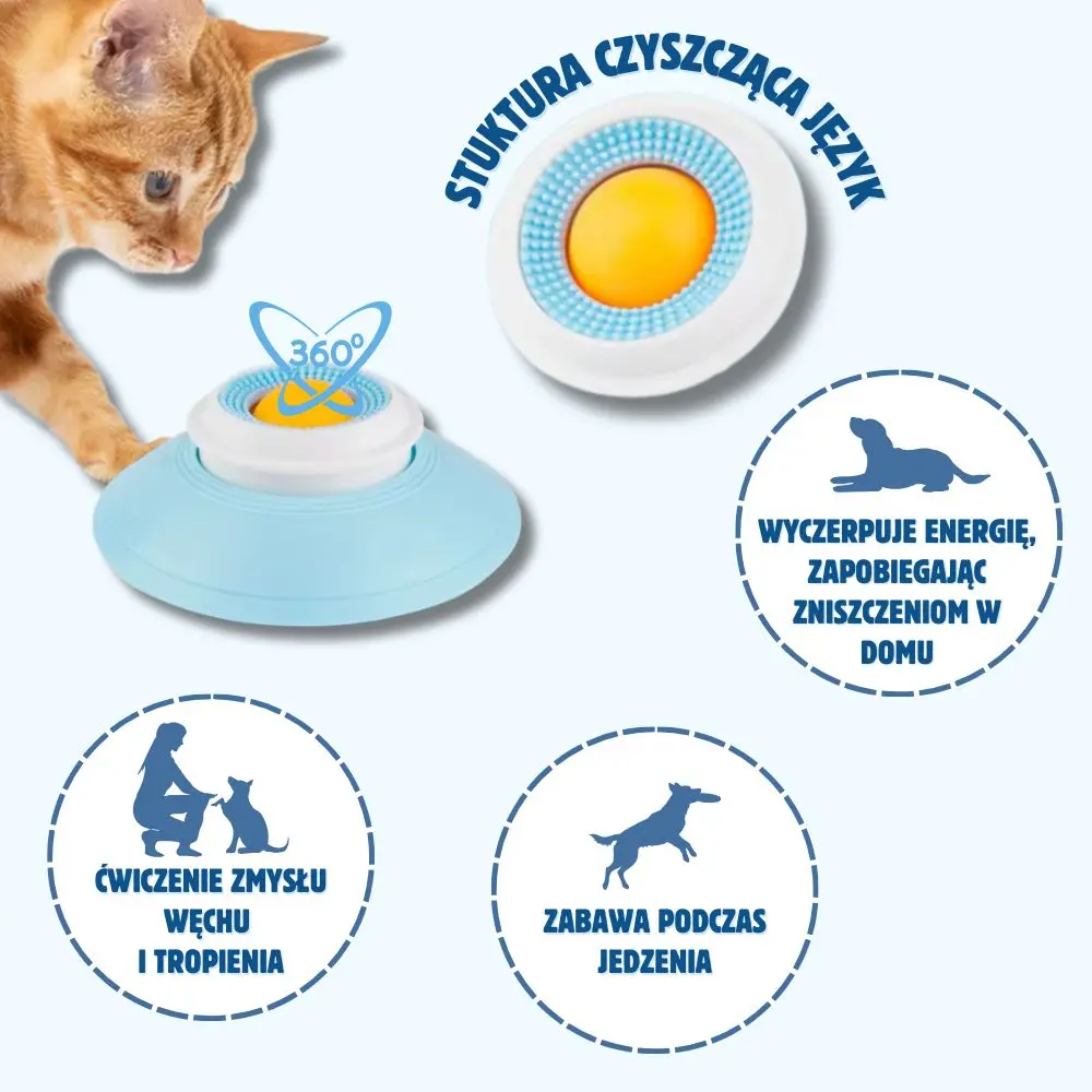 ✨Obracająca się kulka 360° stopniowo odsłania przysmak, dzięki czemu pupil je wolniej i spokojniej.