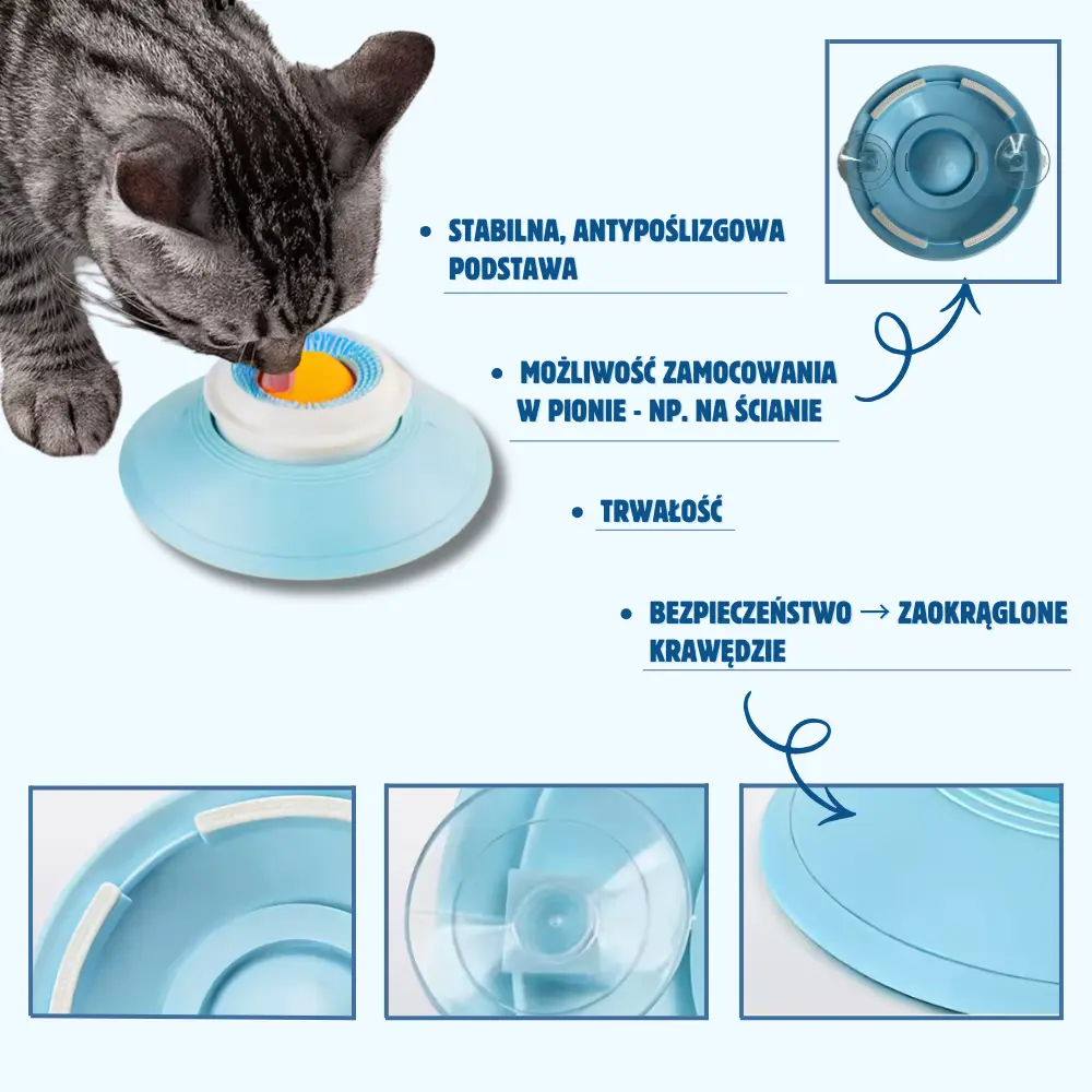 ✅ stabilna podstawa z przyssawkami zapewnia, że miska nie przesuwa się podczas zabawy,