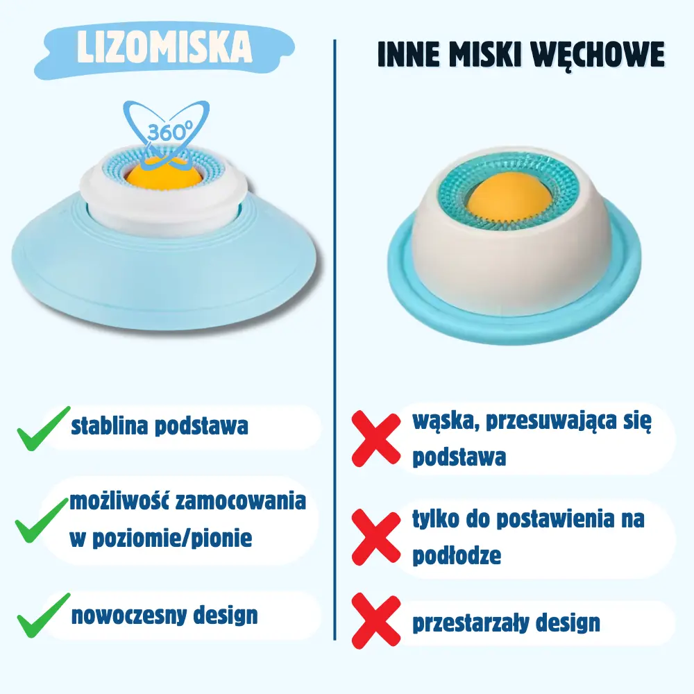 W porównaniu z dostępnymi w internecie modelami, nasza lizomiska oferuje znacznie więcej: